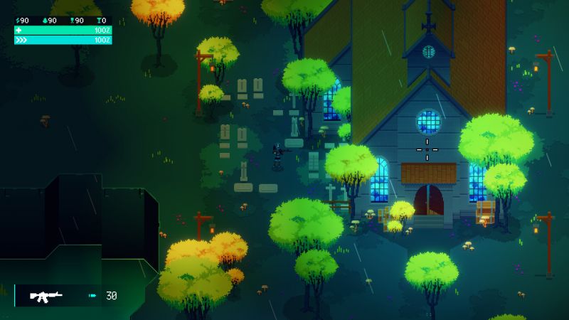 Каждый рейд уникален благодаря процедурной генерации мира. Исследуйте таинственные подземелья, заброшенные базы и небезопасные локации, где за каждым углом может таиться как ценная добыча, так и смертельная опасность. Особый шарм придает стильная пиксельная графика и атмосфера мрачного киберпанка, где кровь врагов окрашивает землю, а вертолет становится единственным путем к спасению.