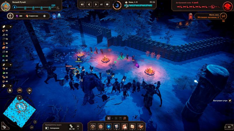 В вечной борьбе геймерам помогут укрепления. Возводите высокие заборы вокруг своего города и выставляйте стражу на ночь. Позаботьтесь о соответствующей экипировке, ведь после наступления темноты становится в разы холоднее. Иногда в поселение заглядывают наемники из соседних деревушек. Подготовьте кругленькую сумму и, возможно, головорез согласится остаться у вас и вступить в локальную армию.