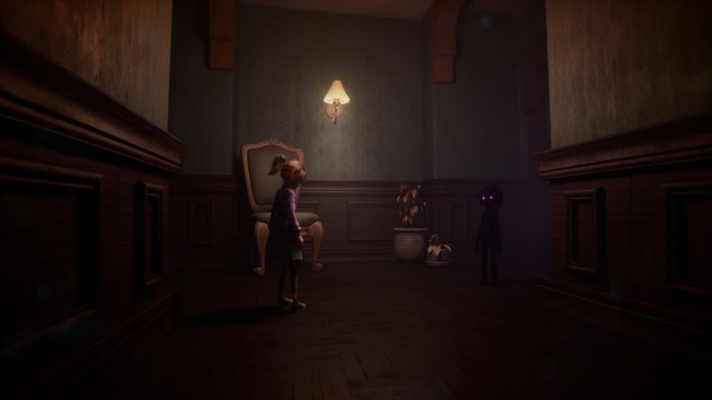 Геймплей балансирует между головоломками и скрытностью: то переключаете перспективу, чтобы провести Софи через лабиринт мебели, то затаиваетесь, слыша шаги похитительницы — миссис Джанны, чей шёпот звучит так, будто она уже за спиной. Особенно удались моменты, когда мишку хватают, и экран дрожит в руках преследователя, а вы лихорадочно крутите камеру, пытаясь понять, где сейчас Софи. Пазлы тут простые (перетащить ящик, найти рычаг), но атмосфера доводит их до идеала — особенно когда обнаруживаешь в шкафу детские наручники или портреты с выколотыми глазами.